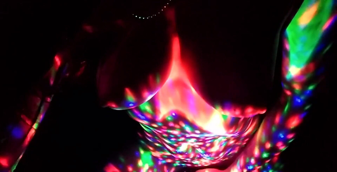 Tančím a třem si nadržené tělo ve tmě s několika trippy světly, která na mě svítí.