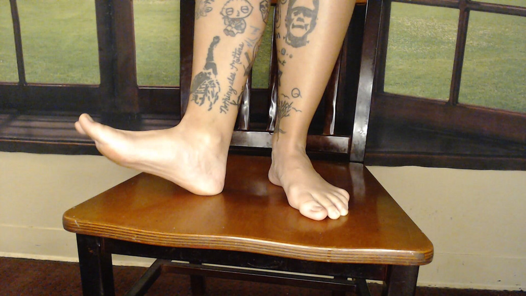 Tapping popping and slamming my feet down super hard. Making lots of foot-to-wood noises. Foot fetish stomping bare feet.