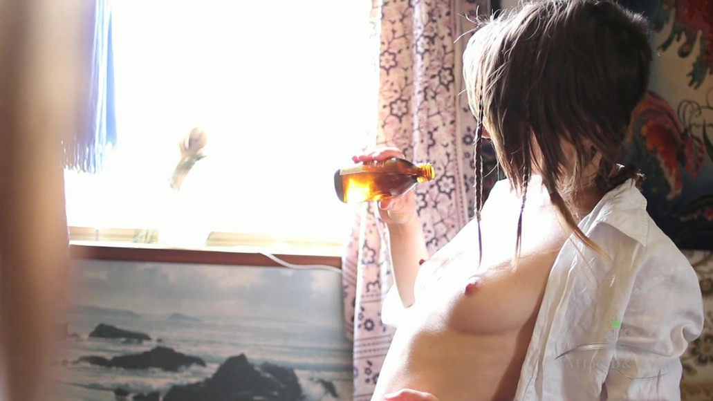 Roe uses the lotion to moisturize her hairy legs showing off her hairy pussy.