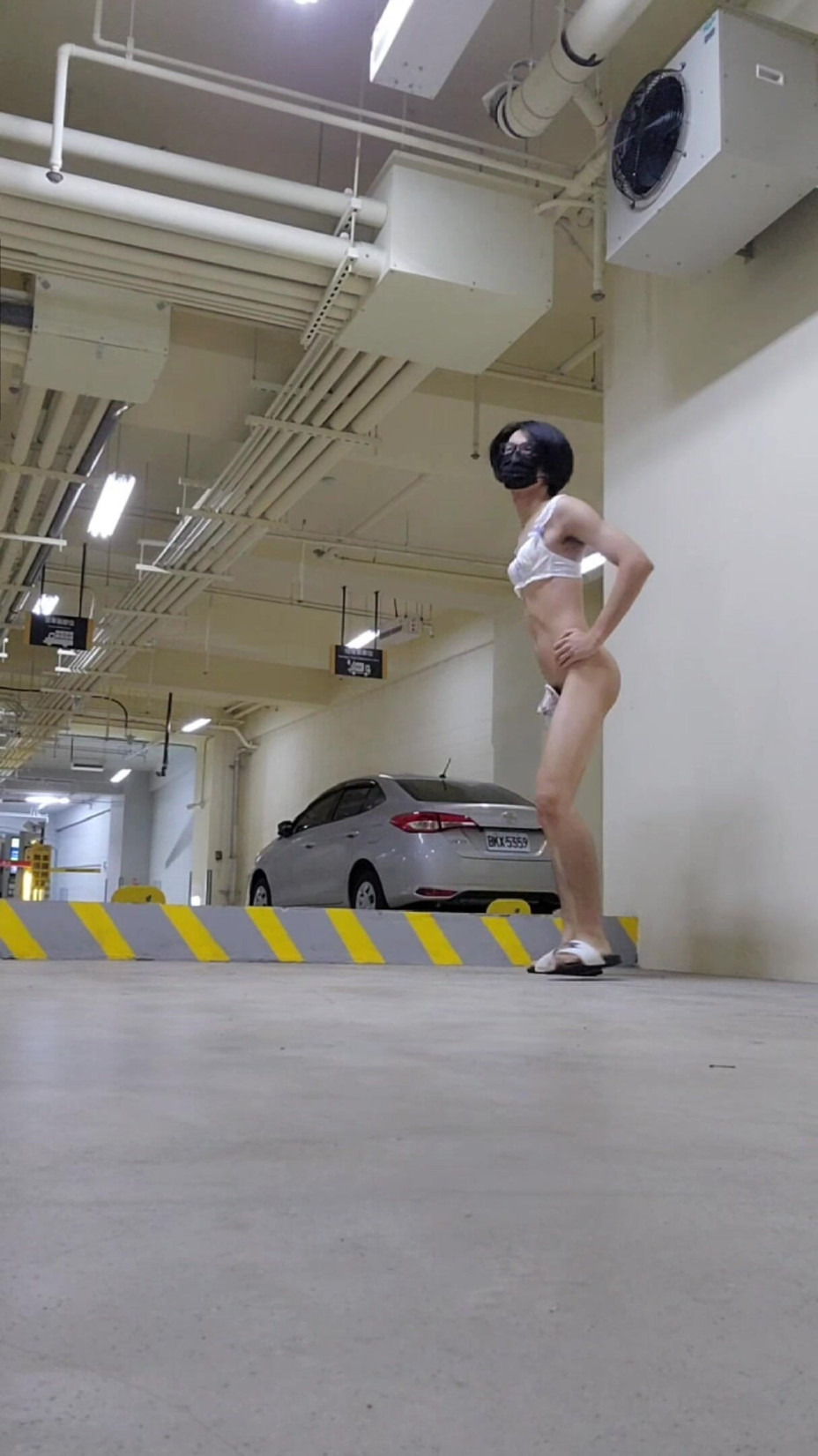 I bought a new type of underwear called C-string (I mistyped the subtitles for C-thong). And as an exhibitionist, I wear it and wandering in parking lot to make myself more horny. And of course, cumming at the end.
