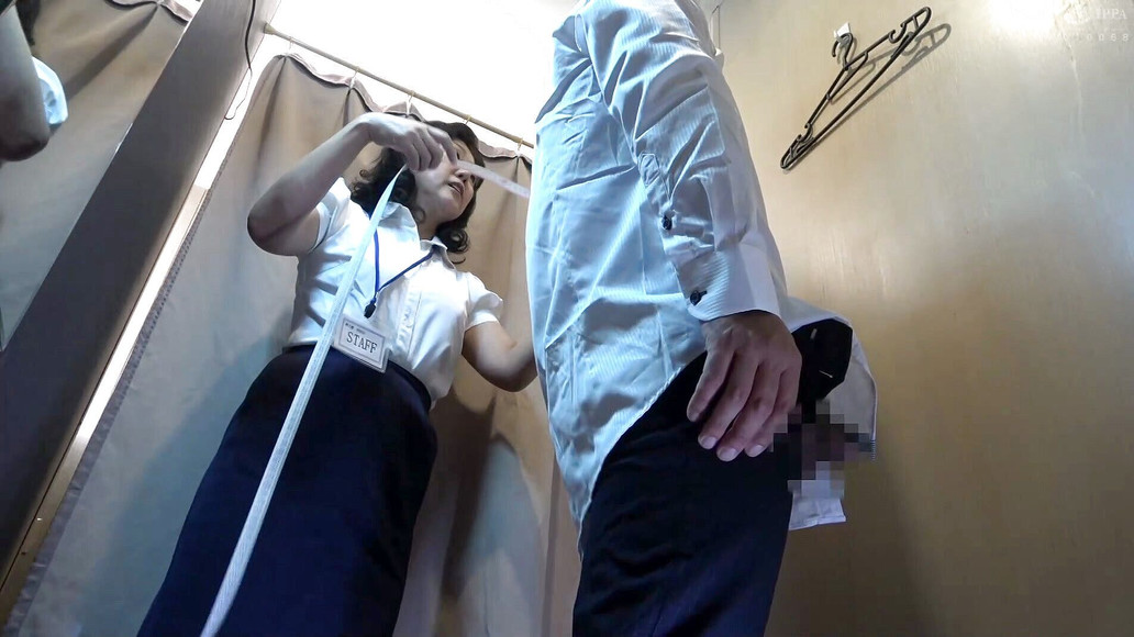 Inside the curtain, it's just the two of them, and the mature shop assistant's face is near her crotch. The clerk puts the waiting needle on the hem of his pants just in time. The fact that she doesn't want to but can't keep her eyes fixed on you is proof that she's horny! When I bring my cock, which is sticking out like a sore thumb, close to the clerk's face. "Sir! Please stop! The mature woman clerk is not happy, but she is very excited to see his erect dick.