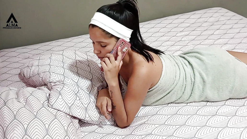 My stepsister is on call with her boyfriend while I fuck her