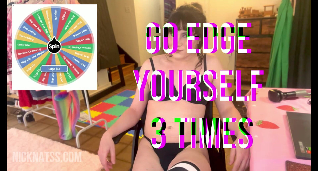 Let’s play a game together, just me and you and a lot of random chance! It’ll be a like a gameshow but just with the two of us.. I’ve got this wheel here, a wheel which will dictate how the evening will progress. We have things like giving yourself a wedgie, slapping your cock or balls, jerking faster, and of course, something for you, we have remove clothes for me! But the best part is the spins that land on EDGE YOURSELF in which you must pause the video and go and edge yourself the number of times dictated by the wheel! And we even have a fun extra cumming wheel at the end as a special surprise, can you last the whole game?