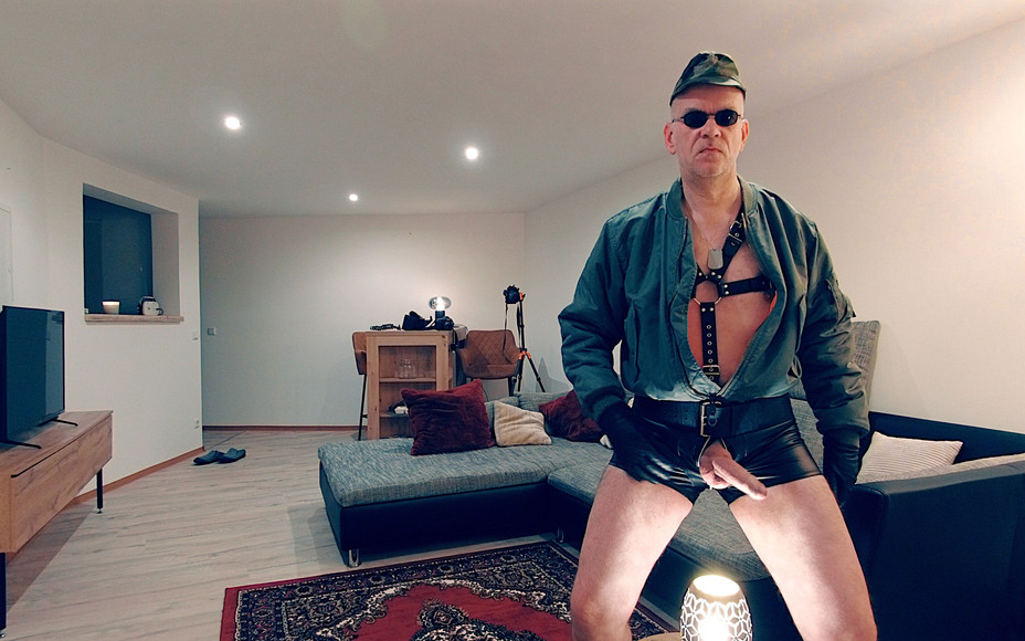 XL Cock Play in Leather Shorts, Harness and Bomber.