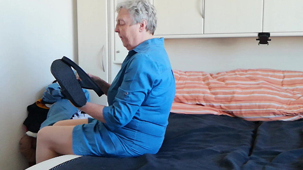 We want to take new outdoor photos - so I put on tights and my jeans dress. I take my mountain pines from Birkenstock with me and now put on my sneakers. Then off to the elevator and the car.