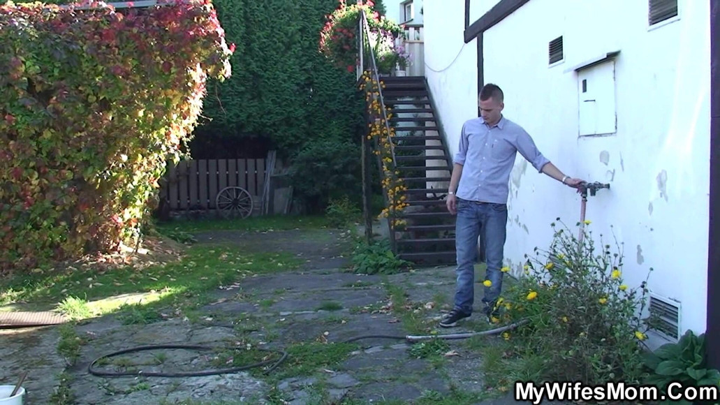 It was all so peaceful. The guy just wanted to give his rusty car a good wash. His mother-in-law just returned from her shopping round, and offered her help. Not suspicious at all, he welcomed her. One thing led to another, and there she is, with her clothes wet, acting sexy! The plump bitch literally sucked him into herself, and the two started humping like crazy under the warm sun. Right after his goo went in her mouth, the wife appeared in the window, got mad like hell and left in the car, now clean and shiny - forever!