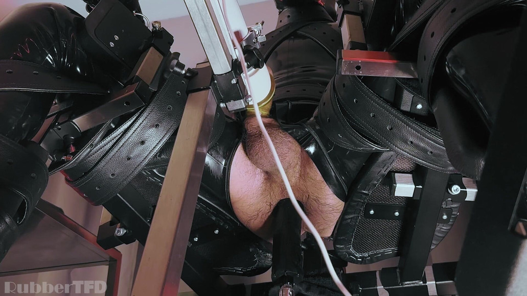 So Pup Devious volunteered to be a test subject in the drone station, trying to get used to the bondage chair and the fucking machine before completely encased in full rubber with more machines!