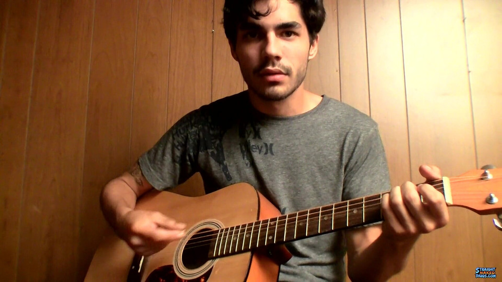 Handsome and uncut hottie Devin has skills that go beyond cock stroking. He's starting off this solo with some guitar playing, and you know he's not bad! Once naked it's hard for us not to be distracted by that gorgeous uncut cock and his cum-filled low hangers, and thankfully he's soon beating that meat and pumping his milky load out.