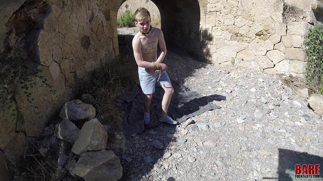 Some twinks need a lot of work before they're sufficiently obedient, but blond boy Taylor is already quite submissive. He still needs to be shown how to follow orders and satisfy the doms, and this humiliating lesson out in the sun will certainly teach him a few things. The boy is already bound and following instructions, but they need to make sure he's properly theirs. Watch as he sucks those cocks, gets drenched in piss, his smooth skin scribbled over with ink and finally gets a shower of semen before wanking out his own cum! Looks like he passed the test.