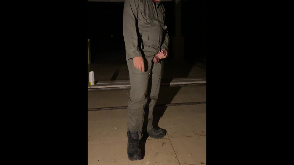 After work is done decide to jerk off in my mechanic jumpsuit and shoot a creamy load - wet with precum lube