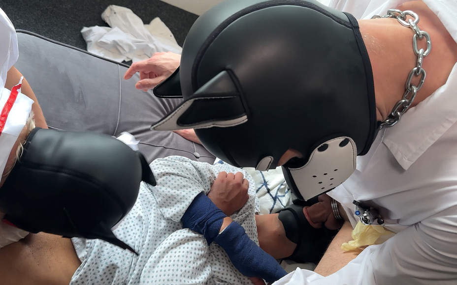 Kody's heart pounded in his chest as he lay in the hospital room, waiting for his operation later that day. With his hand in a cast, he really needed to relieve the pressure building up in his groin when Nurse Blade entered. Checking his vitals, Blade moved around the patient. He noticed a fairly large bulge growing underneath the gown. Blade smiled and pulled it away without warning. Kody gasped, and Blade softly sucked down onto his penis. Suddenly, the doctor entered, asking what was going on. Without another glance at Nurse Blade, the doctor pushed him away, only to get on his knees himself and start sucking hard. After a while, Doctor Geel got up and started bandaging Kody up so that he couldn't move. Smirking at Blade, he signalled for him to take a seat. Without hesitation, he hopped onto Kody and rode him hard, causing Kody to gasp repeatedly. Where would this lead?