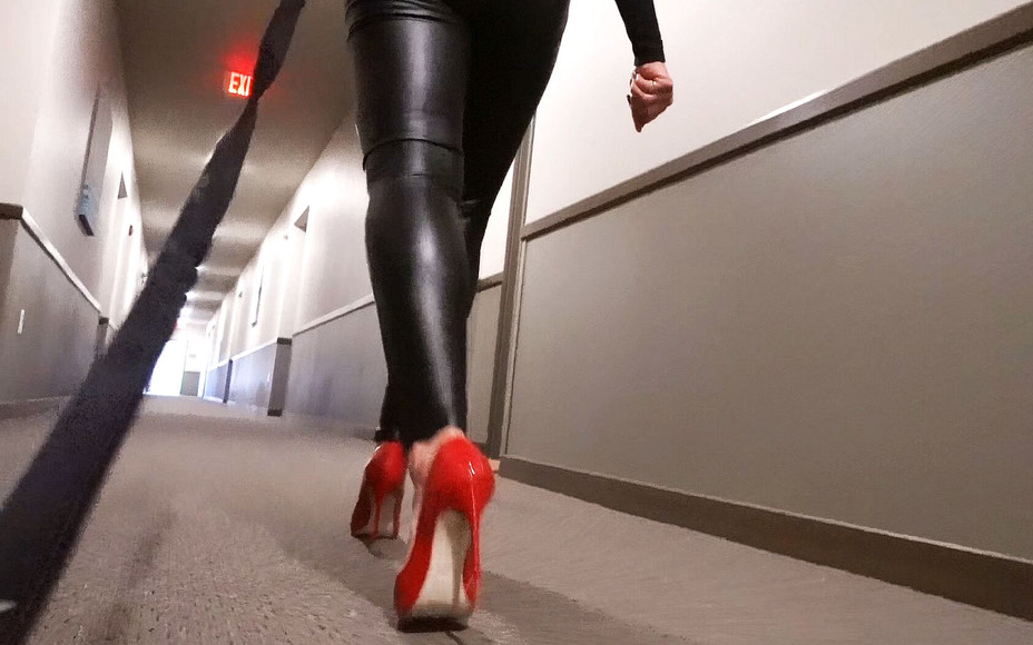 Lil dumbass is lead by a his leash down the public hallway, crawling behind my heels on all fours where he belongs. Lord only knows what I've stepped in while taking doggy on his daily walk, so he'll need to lick the bottom of my shoes clean. As moron licks dirt off my soles, I talk about how I wore these sexy red heels out dancing at the clubs and purposely smeared my shoe in some icky spot I found in the women's restroom, because I know he'll have to lick it off! And how my stud LOVES me to wear these heels when he fucks me--I rubbed his huge dick with them! So there might be a little dried pre cum on the soles haha, plus I'm planning on fucking him again this afternoon, and he likes my shoes spotless. Alright bitch, remove my hot heels, kiss my feet and sniff them for a bit--I know you LOVE the smell of women's feet after a long day in heels. Eat the jam between my toes and lick the stink off my goddess feet while I relax and think about my stud!