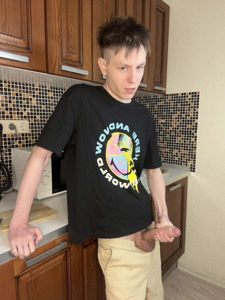 I’m an 18-year-old skinny twink with a massive young cock that barely fits in my hand. Watch this amateur twink strip totally naked. Grab that big cock and start a hot handjob. Slow strokes from the base up to the shiny head. Then faster and faster till the veins bulge and my balls slap against my thigh. My abs flex tight. My back arches. And boom—huge gay cumshot! Thick ropes of cum blast across my chest. Drip down my abs. And I milk out the last drops onto my fingers. Homemade solo from a cute gay boy who knows how to edge himself to explosion.