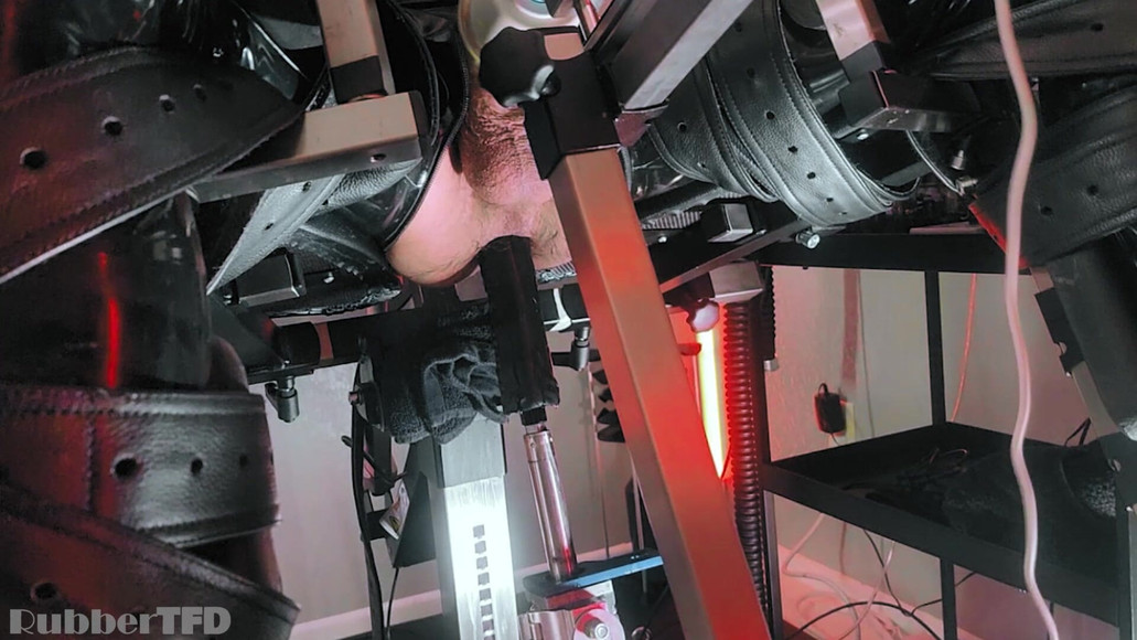 So Pup Devious volunteered to be a test subject in the drone station, trying to get used to the bondage chair and the fucking machine before completely encased in full rubber with more machines!