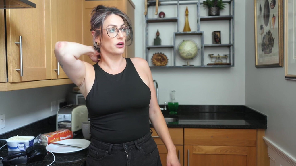 Your Domme roommate is sweating from the heat out, and you're desperate for a sniff of her armpits. She notices your desire and indulges you, humiliating and teasing you for your perverted interest in her sweaty fragrance.